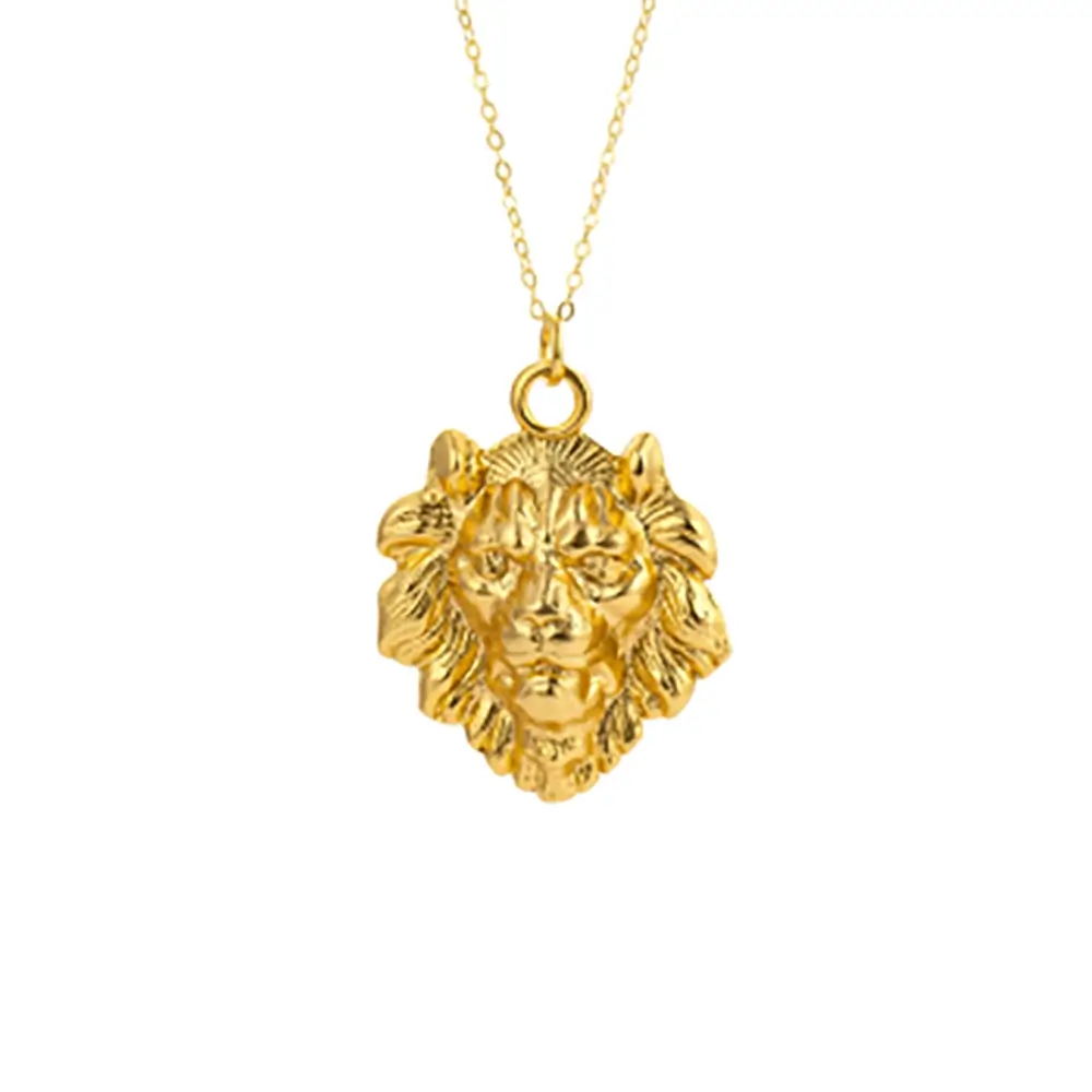 El colgante, cuidadosamente trabajado, representa la majestuosidad del león con un acabado dorado que aporta brillo y sofisticación. Su tamaño y presencia lo convierten en el protagonista ideal de cualquier look, ya sea para el día a día o para ocasiones especiales.