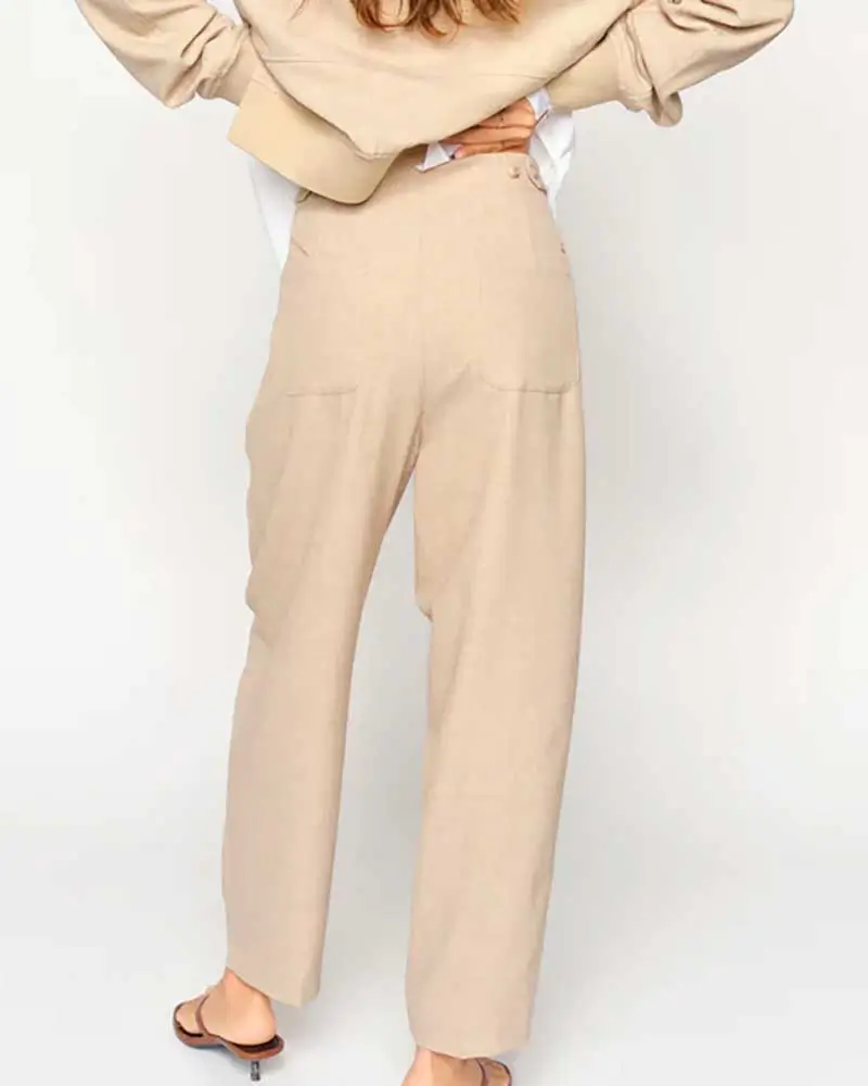 Confeccionados en una suave mezcla de poliéster reciclado, estos pantalones presentan una favorecedora cintura de media a alta y un corte boyfriend relajado con largo corto. La textura jaspeada añade un toque refinado, lo que los hace perfectos tanto para looks elegantes como informales. Combínalos con la chaqueta Flair a juego para un conjunto coordinado sin esfuerzo