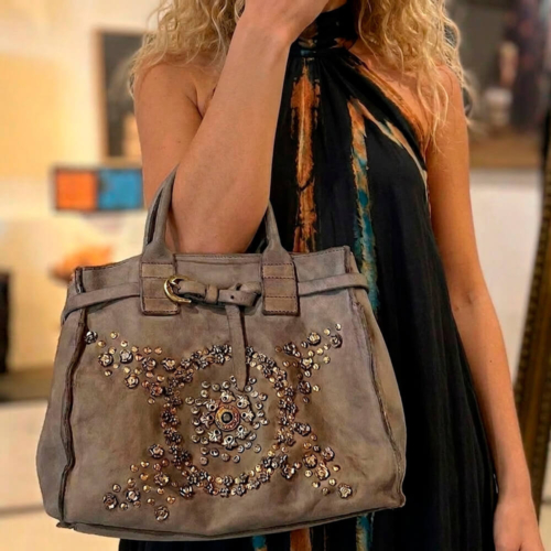 Vive la Difference Bolso Glam Straw Black Gray Tea